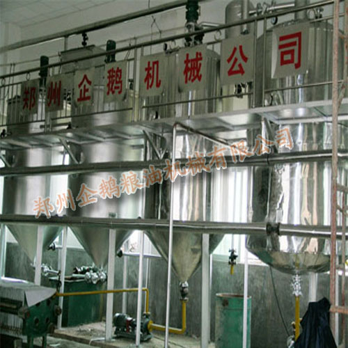 食用油精炼设备是利用浸出原理制取,通过溶剂油把油料中的油脂提取出来,油脂溶解到溶剂油中,称之为混合油,然后通过蒸发设备把溶剂油蒸发,冷凝回收再利用,剩下的油脂就是毛油,被浸过的粕则利用刮板输送机送到脱溶机烘干后输送到粕库。