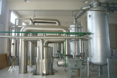 真空装置可采用三级或四级蒸汽喷射泵设备,选用的动力蒸汽压力要适应配备锅炉的压力进行;但不宜采用低于0﹒6兆帕压力,以节约用汽量。